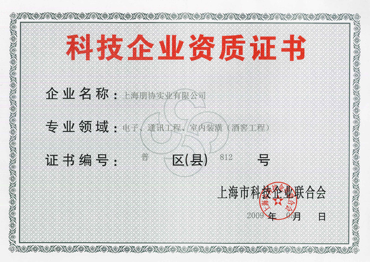 朋協(xié)科技企業(yè)資質(zhì)證書(正本)