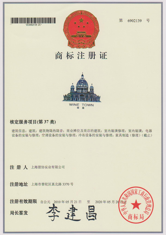 朋協商標注冊證